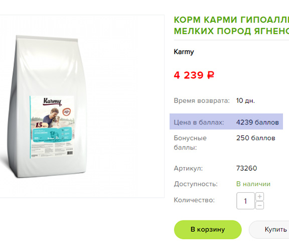 На данный момент бонусные баллы можно получить или потратить только при покупке продукции Karmy.